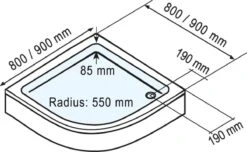Cabine de douche Schulte adaptée à un receveur de douche de 90×90 cm. Lors du montage sans receveur de douche au sol, gardez à l’esprit que la cabine de douche est en fait plus petite que la taille du receveur de douche 90 x 90.