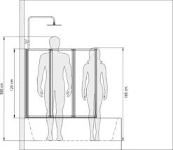 La paroi de la baignoire comporte 3 parties rotatives dont la première partie peut pivoter Ă 180°, la 2e partie tourne vers l’extĂ©rieur et la 3e partie vers l’intĂ©rieur, avec lesquelles le grand pare-baignoire peut ĂŞtre repliĂ© après la douche dans la baignoire. Les parties de la paroi du bain sont ainsi placĂ©es contre le mur afin qu’il y ait de la place pour l’entrĂ©e et suffisamment d’espace pour bouger tout en se relaxant dans le bain.