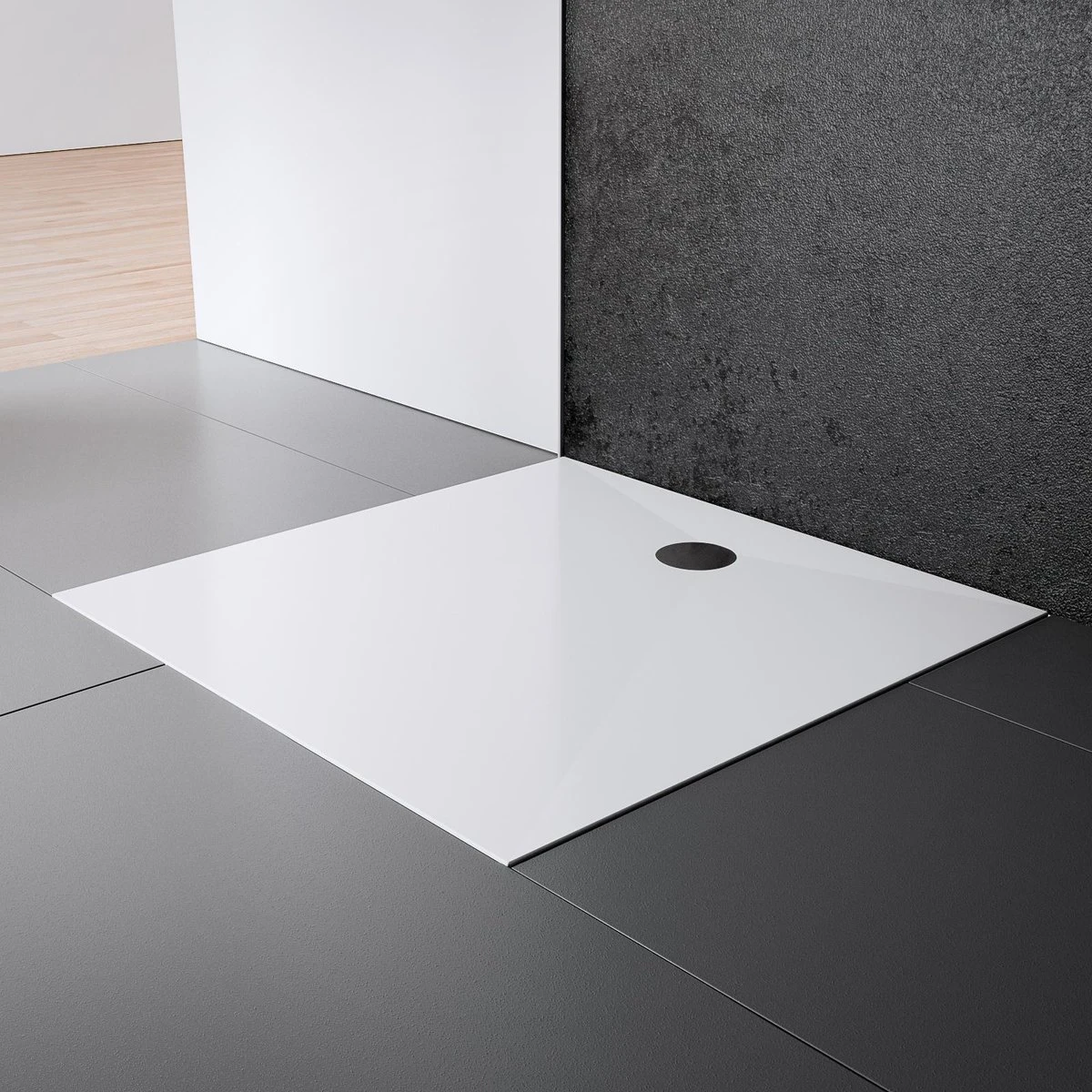 ALTERNATIVE IDÉALE : Receveur de douche avec évacuation et pieds comme alternative à la baignoire. Convient pour une cabine de douche encastrée dans un angle ou pour une cabine de douche en alcôve.