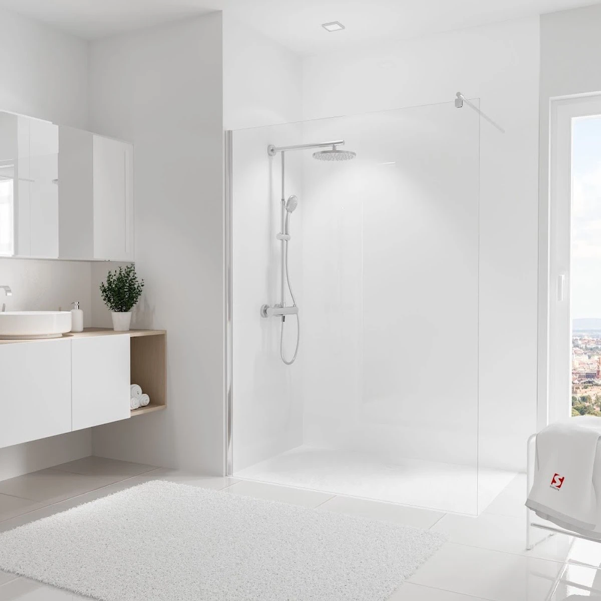 Spécialement pour une utilisation dans la salle de bain et la douche, un mur de fond étanche sans joints. Ces plaques en aluminium avec un noyau en plastique ne font que 3 mm d’épaisseur, ce qui signifie qu’il n’y a pratiquement aucune perte d’espace. Collez simplement sur le carrelage mural existant ou sur toute autre surface plane. Pré- Pré-traitement du support, dégraisser et, si nécessaire, appliquer des bandes de fond de cale. L’assemblage est très simple, découpez les panneaux sur mesure avec une scie sauteuse ou une scie circulaire, retirez le film de protection et appliquez localement le ruban adhésif double face et la colle fournis, appliquez la colle (min. 1-2 tubes par panneau) plus haut que le double- ruban adhésif. Cela permet à la plaque Decodesign de coulisser lors du positionnement avant que le ruban n’adhère. collage avec de la colle silicone ou à l’aide d’une truelle avec encollage complet. Positionner les plaques et bien appuyer pour que la colle et le ruban adhèrent au support. Le ruban n’est qu’une fixation temporaire pour permettre à la colle de se lier. Scellez les Rebords avec du silicone et commencez à utiliser ou à assembler la cabine de douche et les autres articles sanitaires le lendemain. Ces feuilles spécialement laquées imperméables et résistantes aux UV ne conviennent pas seulement pour la salle de bain mais, par exemple, dans la cuisine comme mur arrière. Une multitude de possibilités avec ces parois arrière Deco-design, par exemple dans le salon ou la chambre, le couloir ou l’espace bureau. C’est aussi un produit idéal pour les installations sportives car il est hygiénique, rapide et facile à nettoyer.