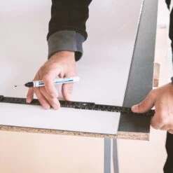 De plus, des jeux de profilés assortis sont disponibles pour les profilés de transition, d’angle intérieur, d’angle extérieur et d’extrémité et les kits de colle. Si vous choisissez vous-même une colle, utilisez une colle imperméable adaptée au collage du marbre ou de la pierre naturelle. Cela dépend de la surface sur laquelle vous souhaitez l’appliquer. Spécialement pour une utilisation dans la salle de bain et la douche, un mur de fond étanche sans joints. Ces plaques en aluminium avec un noyau en plastique ne font que 3 mm d’épaisseur, ce qui signifie qu’il n’y a pratiquement aucune perte d’espace. Collez simplement sur le carrelage mural existant ou sur toute autre surface plane. Un Pré-traitement du support, un dégraissage et, si nécessaire, l’application de bandes de fond de cale sont recommandés.