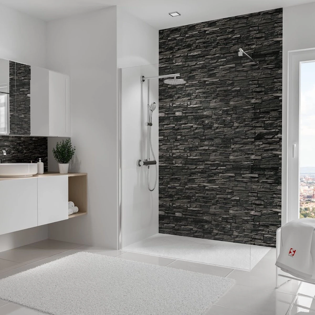 Éditer est très simple, scier les panneaux à dimension avec une scie sauteuse ou une scie circulaire, retirer le film de protection et appliquer localement le double face fourni, coller avec de la colle silicone ou au moyen d’un encollage complet. Positionnez le mur arrière de la douche et appuyez bien pour que le ruban adhère au support. Scellez les Rebords avec du silicone et commencez à utiliser ou à assembler la cabine de douche et les autres articles sanitaires le lendemain. Ces feuilles spécialement laquées imperméables et résistantes aux UV conviennent non seulement à la salle de bain, mais aussi à la cuisine comme mur arrière ou comme aménagement de toilettes. Une multitude de possibilités avec ces parois arrière Deco-design, par exemple dans le salon ou la chambre, le couloir ou l’espace bureau. C’est aussi un produit idéal pour les installations sportives car il est hygiénique, rapide et facile à nettoyer. Avantages par rapport au carrelage : poids léger et traitement facile, traitement rapide et propre, pas de poussière et de saleté à long terme dans et autour de la zone d’installation, pas de temps de séchage intermédiaires multiples. Convivial lors de l’utilisation et de l’entretien, sans joints et facile à nettoyer.