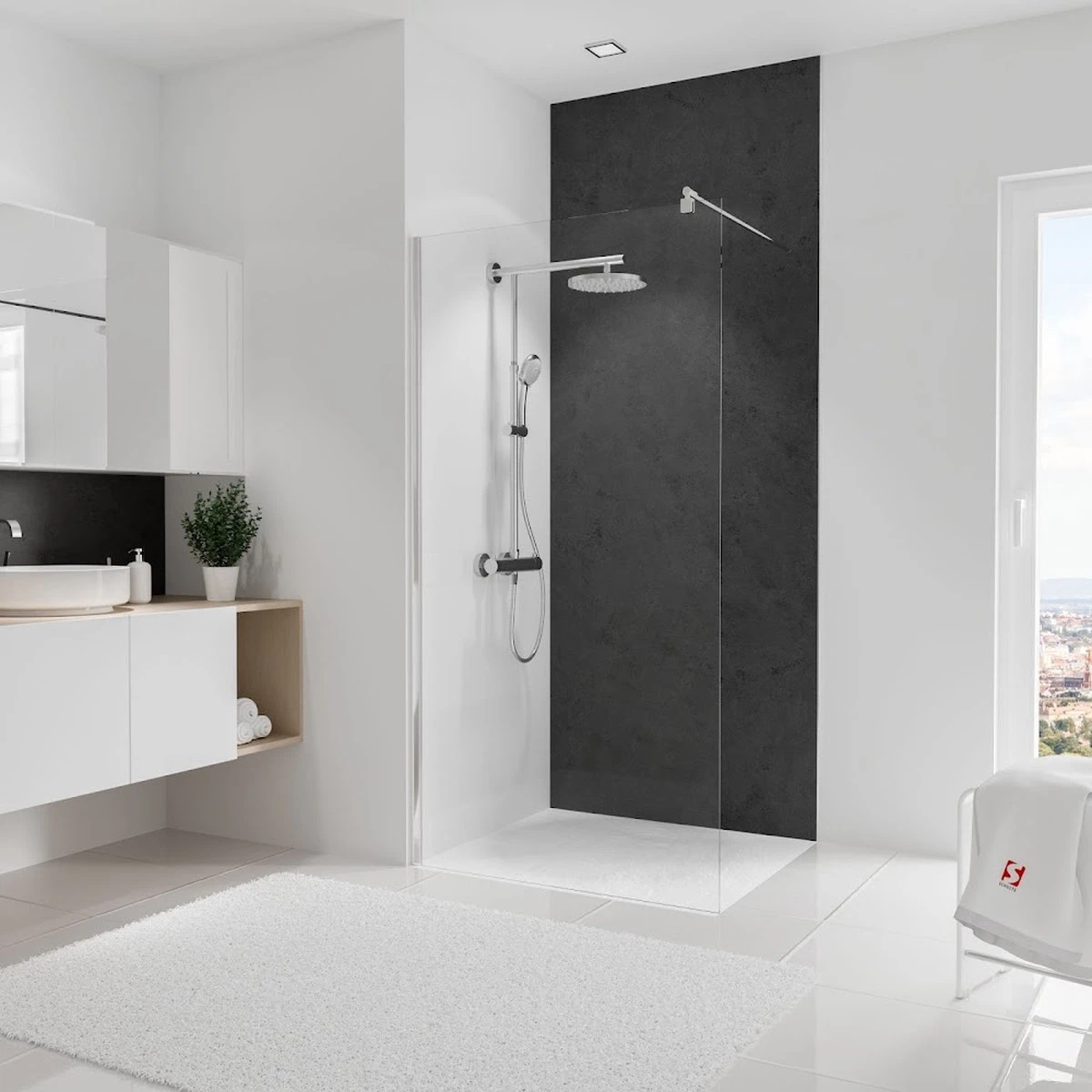 Spécialement pour une utilisation dans la salle de bain et la douche, un mur de fond étanche sans joints. Ces plaques en aluminium avec un noyau en plastique ne font que 3 mm d’épaisseur, ce qui signifie qu’il n’y a pratiquement aucune perte d’espace. Collez simplement sur le carrelage mural existant ou sur toute autre surface plane. Pré- Pré-traitement du support, dégraisser et, si nécessaire, appliquer des bandes de fond de cale. L’assemblage est très simple, découpez les panneaux sur mesure avec une scie sauteuse ou une scie circulaire, retirez le film de protection et appliquez localement le ruban adhésif double face et la colle fournis, appliquez la colle (min. 1-2 tubes par panneau) plus haut que le double- ruban adhésif. Cela permet à la plaque Decodesign de coulisser lors du positionnement avant que le ruban n’adhère. collage avec de la colle silicone ou à l’aide d’une truelle avec encollage complet. Positionner les plaques et bien appuyer pour que la colle et le ruban adhèrent au support. Le ruban n’est qu’une fixation temporaire pour permettre à la colle de se lier. Scellez les Rebords avec du silicone et commencez à utiliser ou à assembler la cabine de douche et les autres articles sanitaires le lendemain. Ces feuilles spécialement laquées imperméables et résistantes aux UV ne conviennent pas seulement pour la salle de bain mais, par exemple, dans la cuisine comme mur arrière. Une multitude de possibilités avec ces parois arrière Deco-design, par exemple dans le salon ou la chambre, le couloir ou l’espace bureau. C’est aussi un produit idéal pour les installations sportives car il est hygiénique, rapide et facile à nettoyer.
