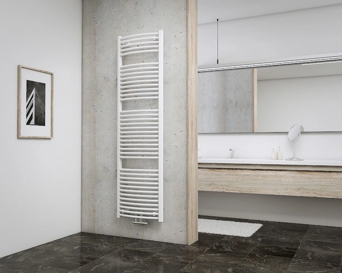 L’espace est un facteur important lors du choix d’un nouveau radiateur. Après tout, vous voulez que le radiateur prenne tout son sens et dégage suffisamment de chaleur dans la pièce. Par conséquent, réfléchissez à l’avance à l’endroit où vous souhaitez placer cette source de chaleur et calculez la capacité de radiateur requise. Dans une salle de bain vous choisissez un radiateur sèche-serviettes ou un radiateur design épuré. Le radiateur sèche-serviettes se caractérise par les barreaux sur lesquels on laisse sécher les serviettes. Perfect lorsque vous sortez de la douche ou du bain. Un radiateur design, quant à lui, est connu pour son design épuré et peut attirer l’attention dans votre salle de bain. De plus, vous bloquerez également en partie la chaleur du radiateur lorsque vous le suspendez plein de serviettes. Le principe de fonctionnement d’un radiateur consiste en de l’air froid qui est chauffé au contact des différentes chambres du radiateur. En le recouvrant, vous entraverez partiellement le chauffage de la salle de bain. Si vous n’avez pas assez d’espace ou si vous souhaitez économiser sur votre budget, vous pouvez également parfaitement acheter un radiateur ordinaire avec un porte-serviettes disponible séparément comme dans l’exemple ci-dessous.