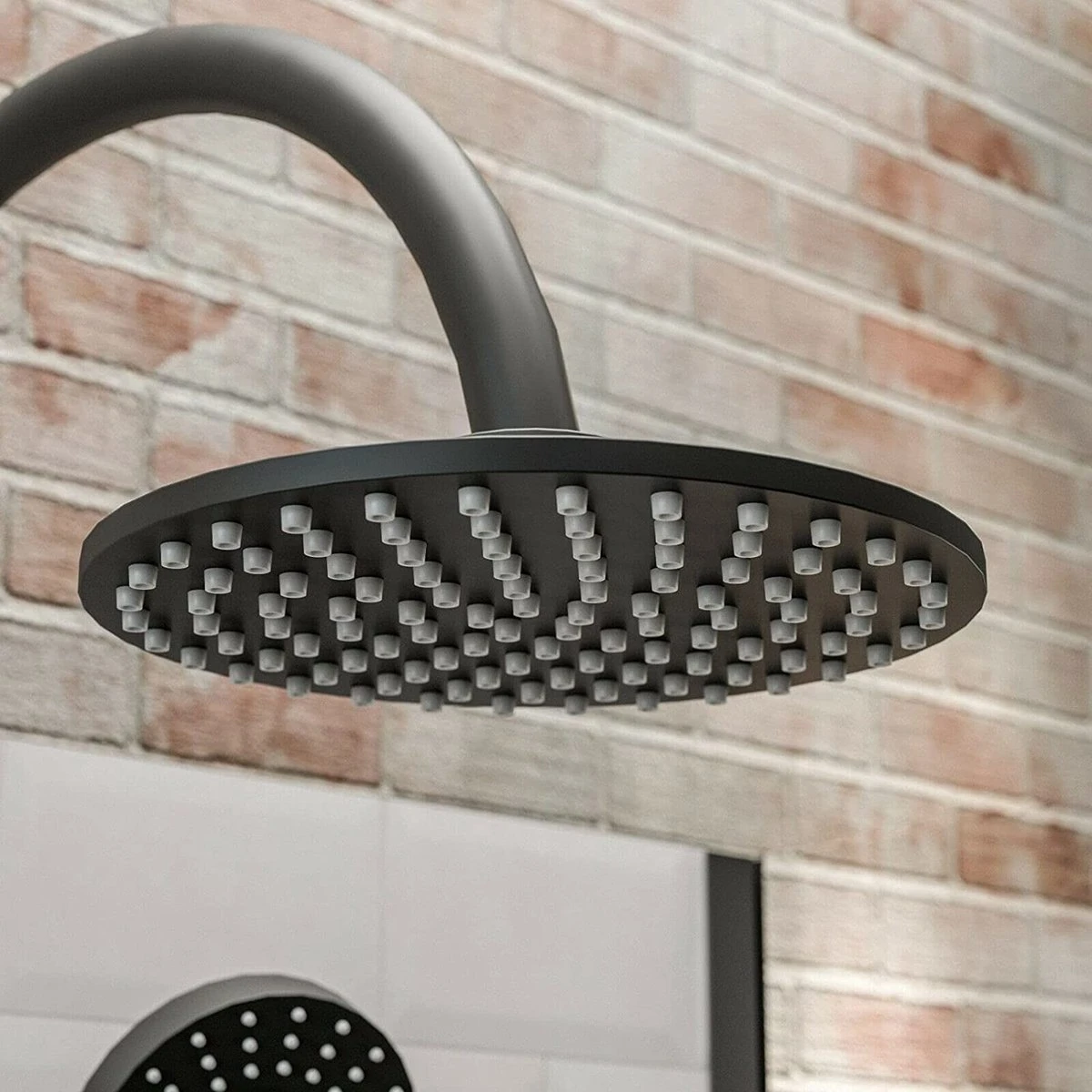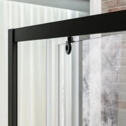 Cabine de douche autoportante prête à l’emploi en U contre une paroi arrière plate d’une hauteur totale de 215 cm.