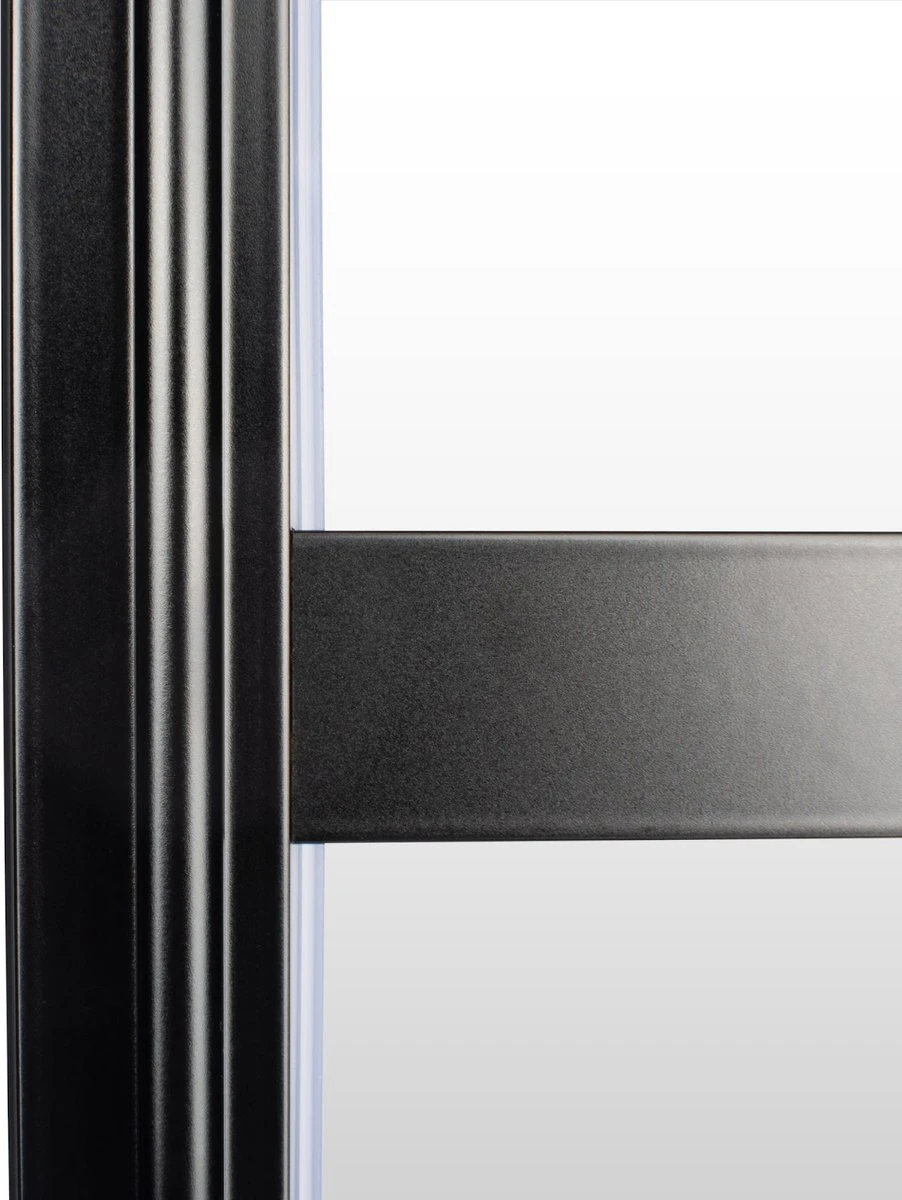 Sunny – cabine de douche complète avec porte coulissante 2 pièces avec paroi latérale, 120 x 90 cm, verre clair, profilés en aluminium noir mat tout autour. Les profilés Metropolitan en aluminium noir à l’extérieur du verre de sécurité font de cette cabine un véritable accroche-regard pour la salle de bain, Atelier du Bain.