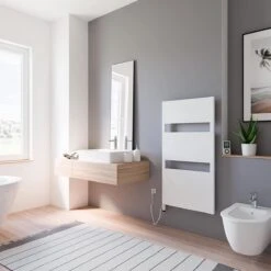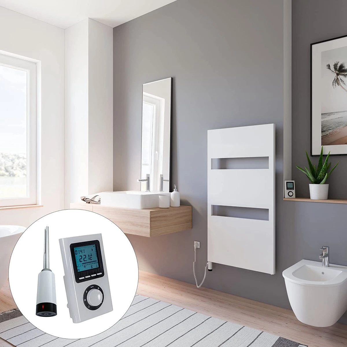 Un radiateur design avec branchement électrique est un radiateur pour sécher les serviettes légèrement humides et les garder au chaud. Un avantage supplémentaire est que la pièce est également légèrement chauffée, ce qui la rend idéale pour la salle de bain et la cuisine comme chauffage d’appoint. L’élément chauffant doit toujours se trouver en bas du radiateur ! Le mélange d’environ Glycol 10% assure une répartition optimale de la chaleur et protège également du gel jusqu’à -5°C.
