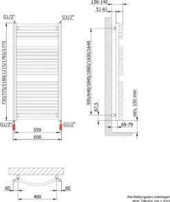 Un radiateur design avec branchement électrique est un radiateur pour sécher les serviettes légèrement humides et les garder au chaud. Un avantage supplémentaire est que la pièce est également légèrement chauffée, ce qui la rend idéale pour la salle de bain et la cuisine comme chauffage d’appoint. L’élément chauffant doit toujours se trouver en bas du radiateur ! Le mélange d’environ Glycol 10% assure une répartition optimale de la chaleur et protège également du gel jusqu’à -5°C.